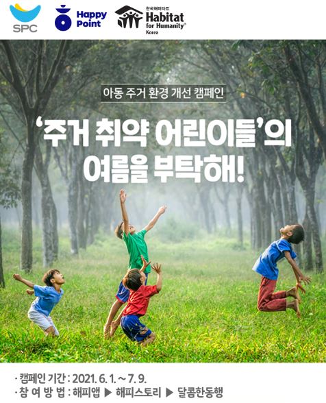 SPC그룹이 여름방학을 앞두고 주거환경 취약계층 어린이들을 돕기 위해 고객과 함께 하는 ‘SPC해피쉐어 캠페인’을 진행한다고 1일 밝혔다.