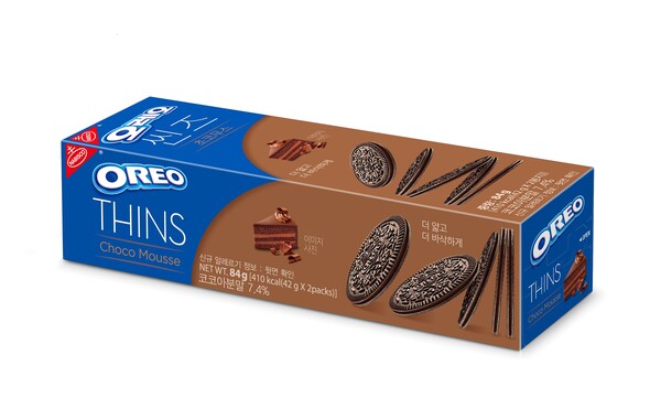오레오 씬즈 초코무스는 얇고 바삭한 식감의 오레오 씬즈 쿠키에 진하고 고급스러운 초콜릿 무스맛 크림이 조화롭게 어우러진 제품이다. 초콜릿 무스 케익처럼 부드러우면서도 진한 초콜릿의 풍미를 그대로 담은 맛의 크림이 특징이다.