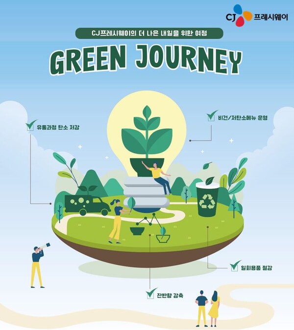 CJ프레시웨이가 올해부터 ESG(환경·사회·지배구조) 활동 일환으로 ‘그린 저니(Green Journey)’ 캠페인을 진행한다고 8일 밝혔다. 그린 저니 캠페인은 단체급식과 카페 점포의 탄소배출 및 폐기물을 줄이는 환경보호 활동이다.