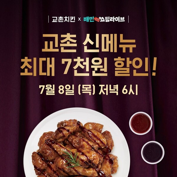 교촌치킨이 신제품 발사믹치킨 출시를 기념해 배달의민족 ‘쇼핑라이브’를 통해 할인 혜택을 제공한다고 8일 밝혔다.