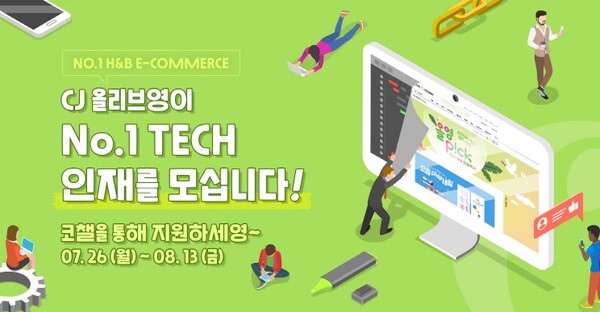 또 다음달 4일에는 CJ채용 유튜브 채널에서 라이브 방송 형식의 채용 설명회 올리브영 테크 채용 콘서트도 개최된다.