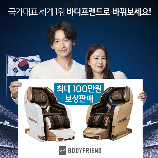 바디프랜드가 사용 중인 제품을 반납하면 최대 100만원의 보상혜택을 제공하는 '국가대표 안마의자 보상판매' 를 진행한다고 5일 밝혔다.