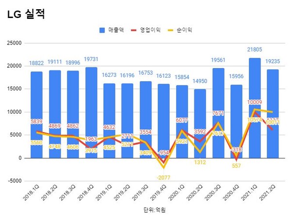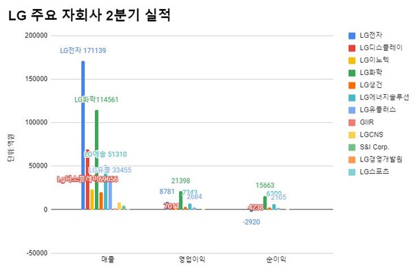 2분기 순이익이 적자를 낸 곳은 LG전자와 LG경영개발원(-8억원) 뿐이다.