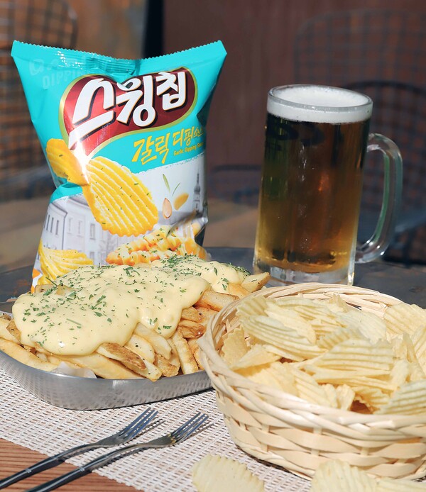스윙칩 갈릭디핑소스맛은 감자칩 물결 모양 굴곡을 스윙칩 볶음고추장맛 대비 40% 더 깊은 3.5mm로 커팅한 제품이다. 마늘과 부드러운 마요네즈를 더한 갈릭디핑소스맛이 생감자칩과 어우러져 풍성한 ‘단짠맛’을 선사한다고 회사 측은 설명했다.