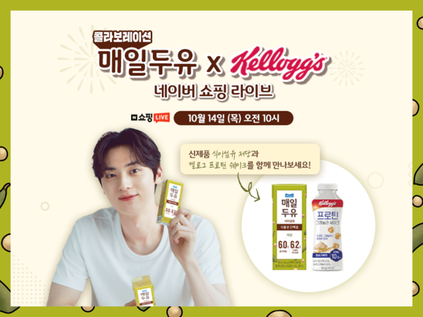14일 오전 10시 네이버 쇼핑라이브에서 진행되는 합동 라이브방송에서는 두 가지 구성의 기획상품을 선보인다. 매일두유 식이섬유 저당과 농심켈로그 프로틴쉐이크 미숫가루맛 구성, 매일두유 고단백과 농심켈로그 프로틴쉐이크 초코맛 구성이다.