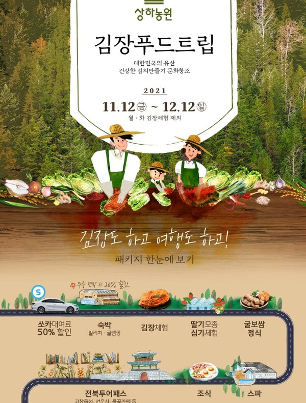 이외에 상하농원은 12일부터 다음달 12일까지 김장체험 및 김장과 어울리는 제철요리를 먹으며 여행을 하는 ‘김장푸드트립 패키지’도 진행한다.