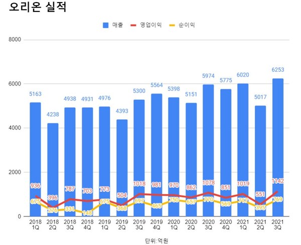 오리온은 “원자재 가격의 전반적인 상승에도 가격을 동결했고 추석 특별상여금 지급 등 비경상적 경비가 증가했음에도 영업이익이 늘었다”며 “간편대용식 ‘마켓오네이처’ 브랜드와 단백질 강화 제품 중심의 ‘닥터유’ 브랜드가 각각 32%, 38% 고성장하며 매출 성장을 주도했다”고 설명했다.