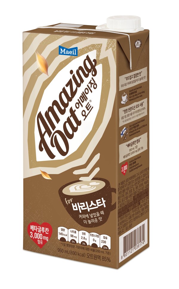 매일유업은 대용량 신제품 ‘어메이징 오트 바리스타(950㎖)’를 출시했다고 11일 밝혔다.