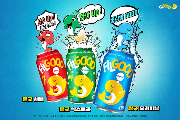 오비맥주는 젊은 세대와의 소통 강화를 위해 필굿의 세 가지 제품 라인업인 필굿 오리지널, 필굿 세븐, 필굿 엑스트라의 다채로운 맛을 상징하는 '고래' 캐릭터 3종을 선보였다.