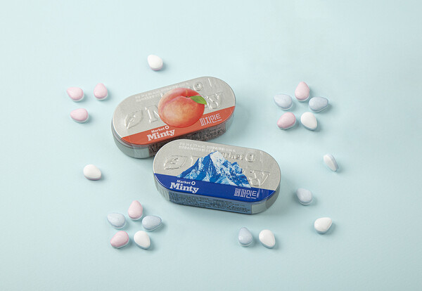 마켓오 민티를 ‘페퍼민트’와 ‘피치민트’ 2가지 맛으로 선보였다.