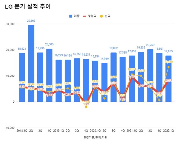 LG 관계자는 “우크라이나 침공 사태에 따른 유가 등 원재료비와 물류비 증가, 중국 주요 도시 봉쇄 영향으로 화학계열 지분법 손익이 감소하며 영업이익이 감소했다”고 설명했다.