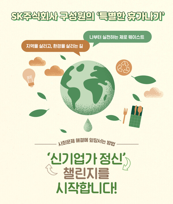 우선 SK㈜는 ▲휴가지 렌터카는 전기차 이용하기 ▲휴가지에 다회용기 가져가 사용하기 ▲현지 종량제 봉투로 쓰레기 주워 주변 청결히 하기 등 구성원들의 참여를 독려하는 챌린지 캠페인을 진행한다.