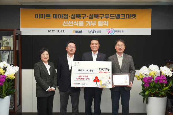 [포쓰저널=서영길 기자] 이마트는 29일 서울 성북구청에서 성북구청, 성북구푸드뱅크마켓과 미판매 신선식품 기부에 관한 협약을 체결했다고 30일 밝혔다.