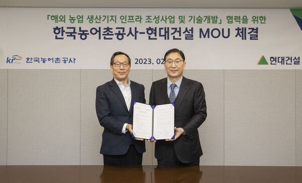 현대건설은 20일 서울 종로구 계동 현대건설 본사에서 한국농어촌공사와 ‘스마트 농업 기반 조성 및 해외진출을 위한 전략적 업무협약(MOU)‘을 체결했다고 밝혔다.