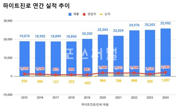 하이트진로는 매출액 증가 및 광고선전비 등 판관비 감소에 따라 이익이 증가했다고 설명했다.