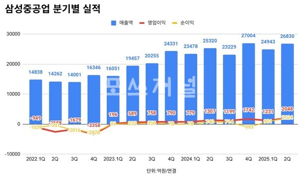 [포쓰저널=송신용 기자] 삼성중공업은 연결재무제표 기준 2분기 영업이익 2048억원으로 전년동기 대비 56.7% 증가했다고 24일 공시했다.