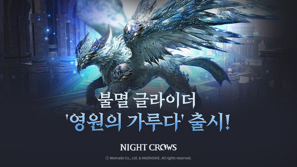 위메이드가 서비스하고 매드엔진에서 개발한 대작 MMORPG(다중접속역할수행게임) '나이트 크로우'가 21일 불멸 등급 글라이더 ‘영원의 가루다’를 공개했다고 21일 밝혔다.