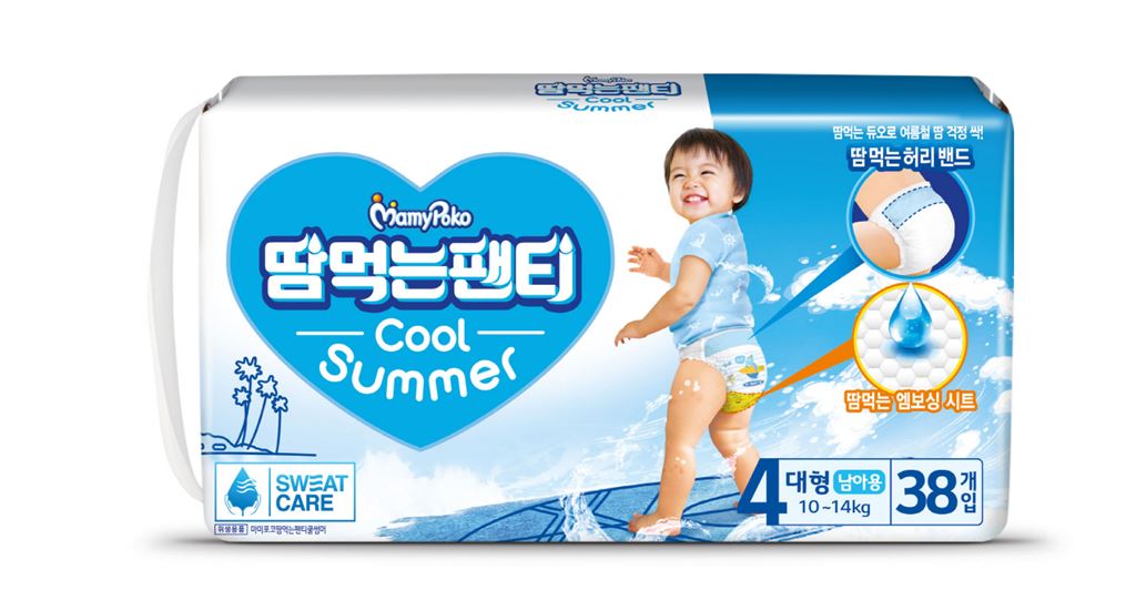 이번 제품에는 땀으로 축축해지는 아기 허리와 엉덩이 부위에 ‘땀먹는 허리밴드’와 ‘땀먹는 엠보싱시트’가 적용됐다.